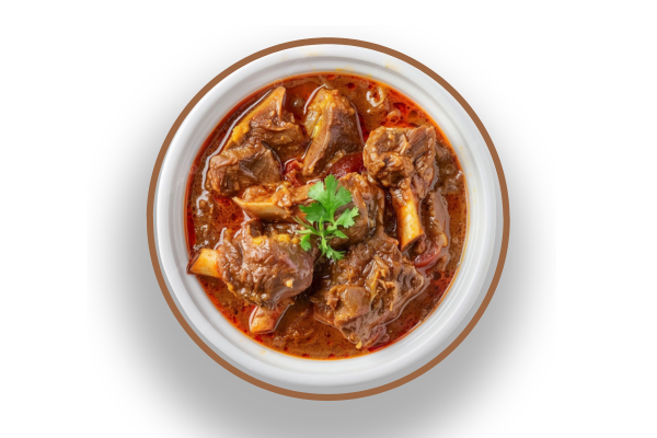 Slowcooked Goatmeat simmered and served in an aromatic broth